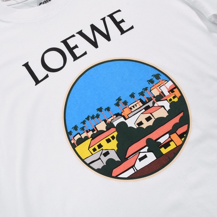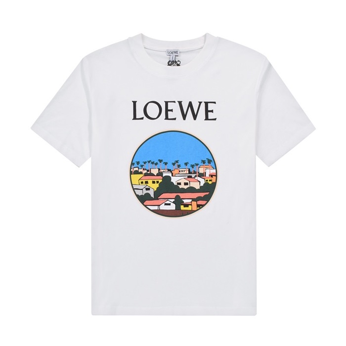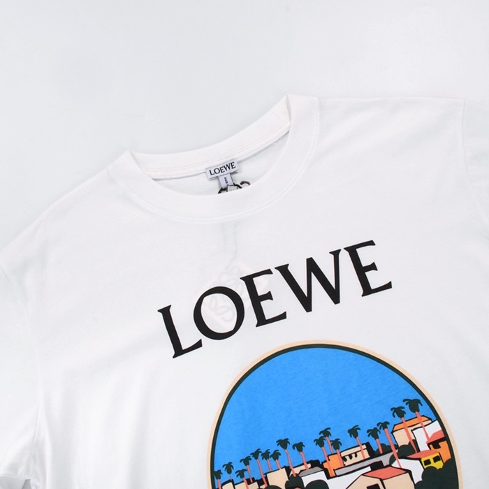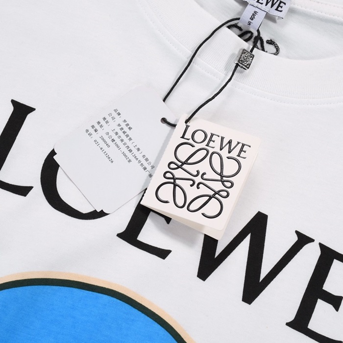ロエベロエベメンズスマイルシルケット半袖Tシャツe0359ホワイト