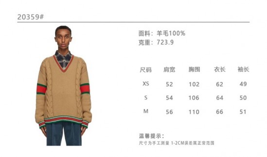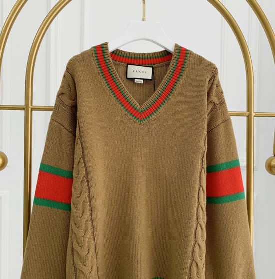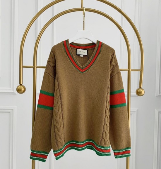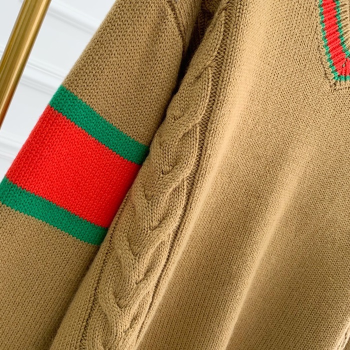 -グッチメンズクルーネックセーターc03348キャメル