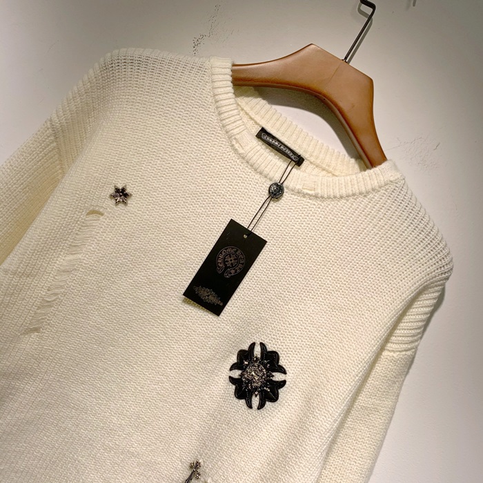 クロムハーツ-クロムハーツメンズクルーネックウールセーターr0325.アイボリー