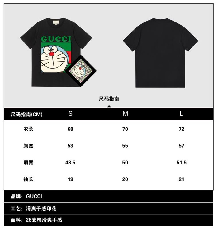 グッチユニセックス半袖Tシャツc03362ブラック