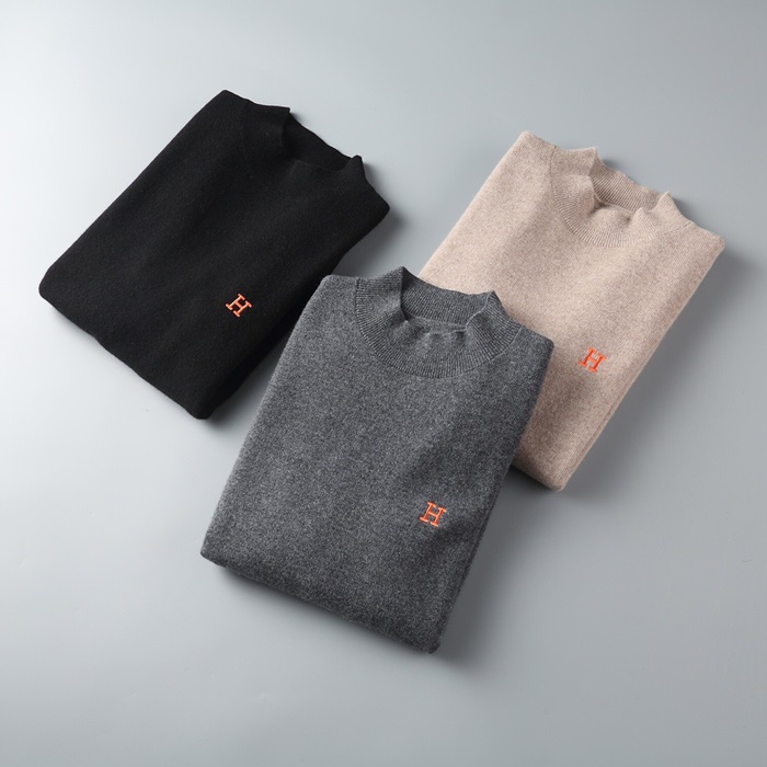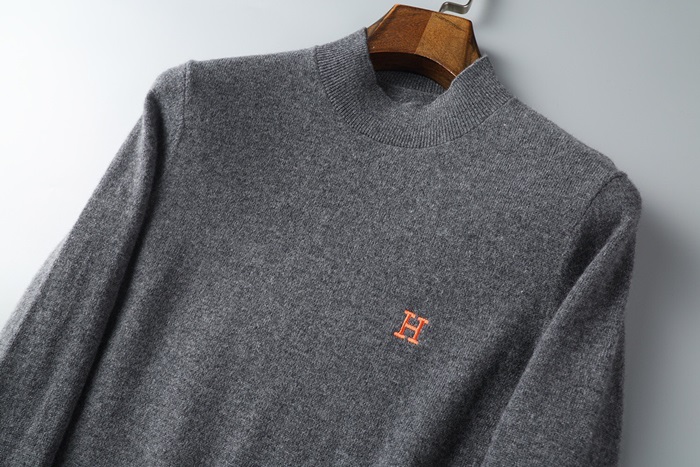 エルメス-エルメスメンズクルーネックウールセーターr0572グレー