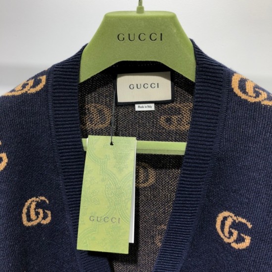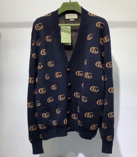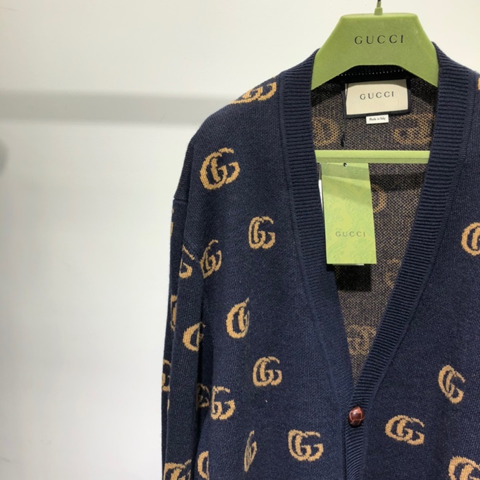 グッチユニセックストレンディネックカーディガンc03368ネイビー