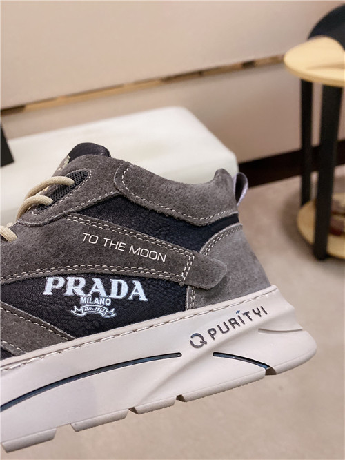 プラダメンズレザーランニングシューズ,S0676,グレー