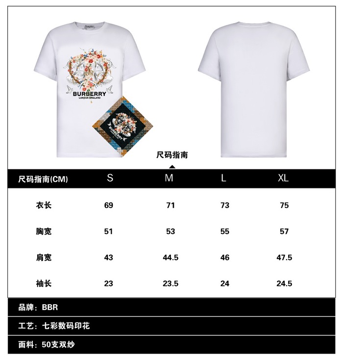バーバリーバーバリーユニセックスコットン半袖Tシャツr03648ホワイト