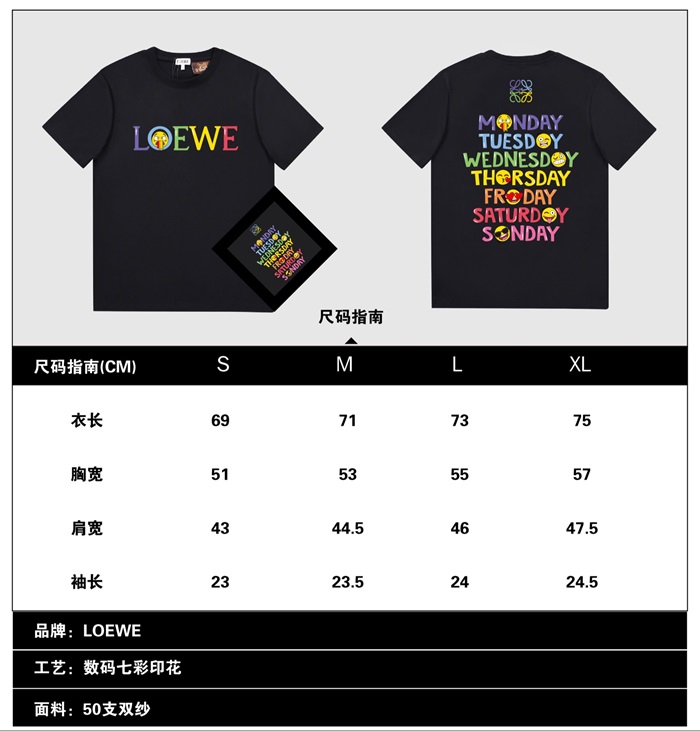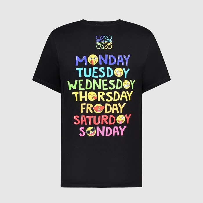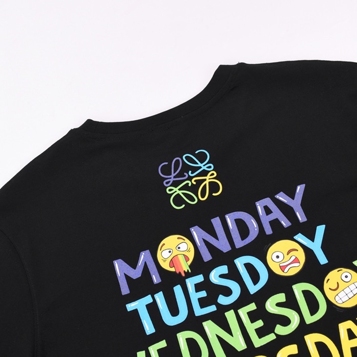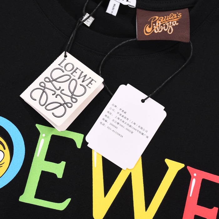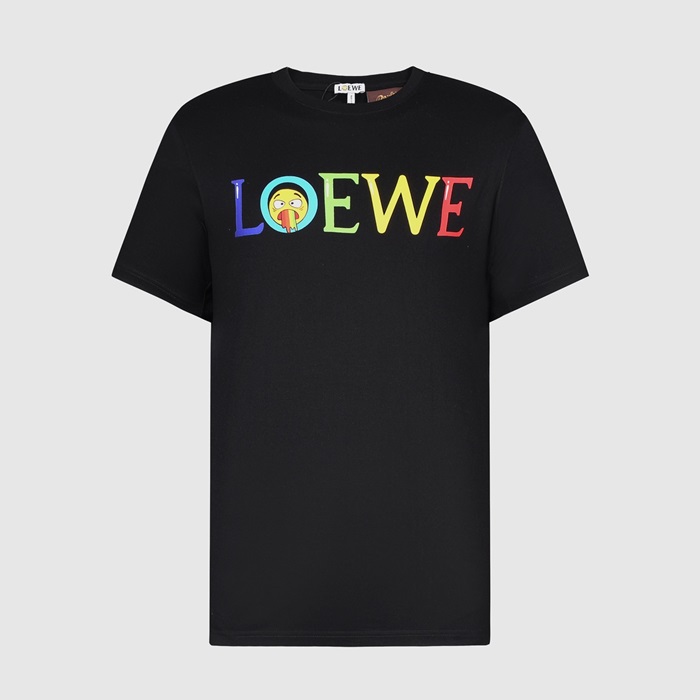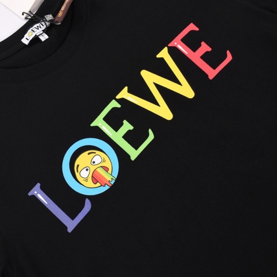 ロエベロエベメンズスマイルシルケット半袖Tシャツe0369ブラック