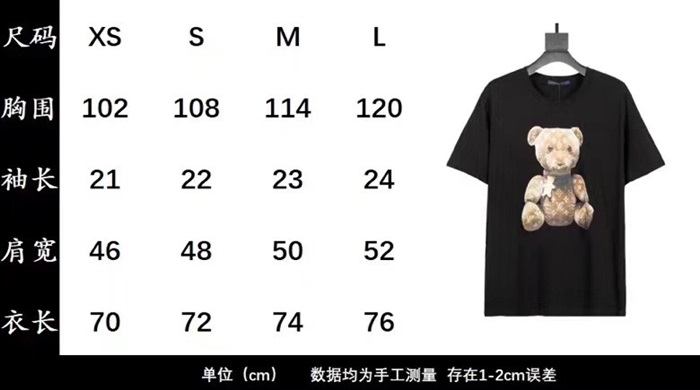 ルイヴィトンルイヴィトンユニセックス半袖Tシャツu02580ブラック