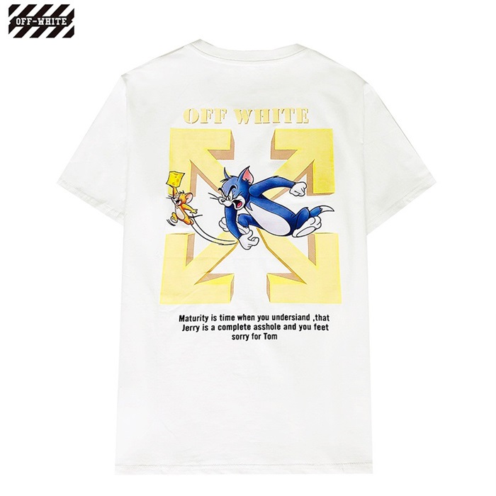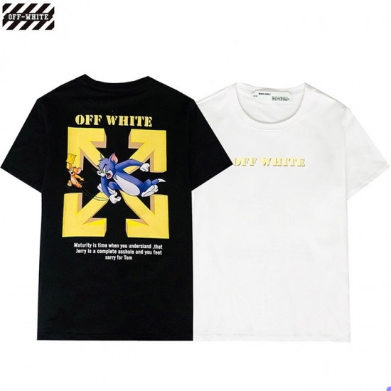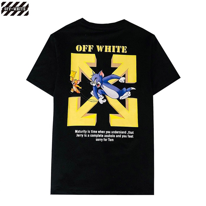オフホワイトオフホワイトユニセックスプリントコットン半袖Tシャツf0638.ブラック