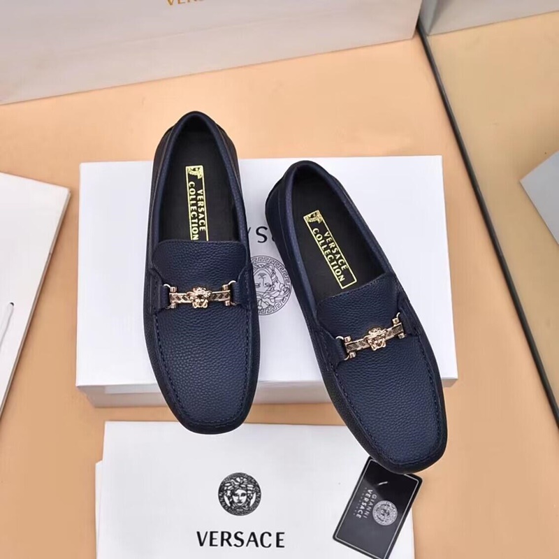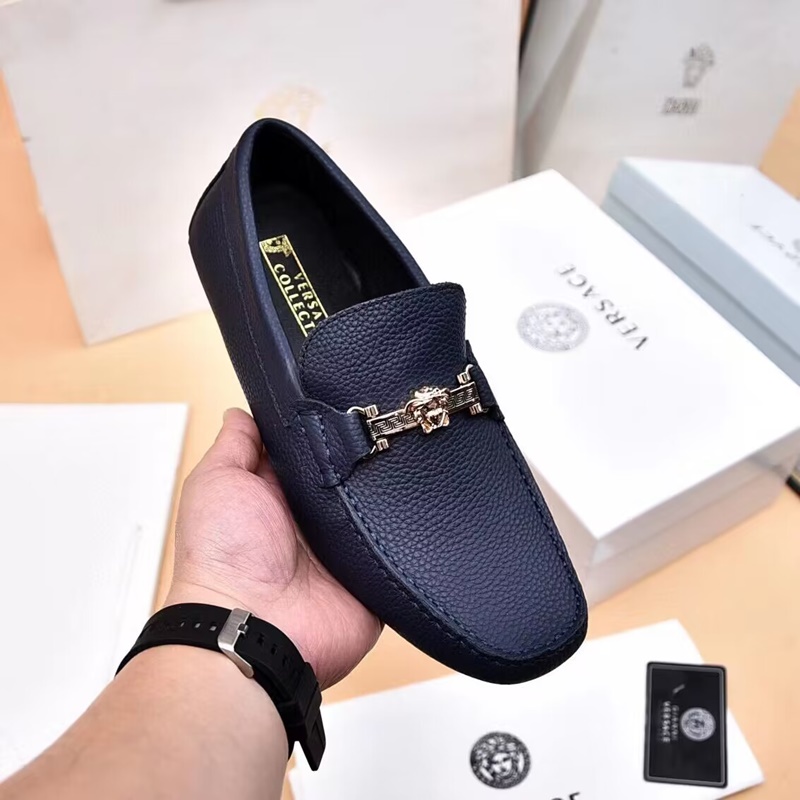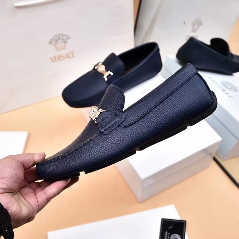 ;ヴェルサーチェメンズレザーローファー,S0543,ブルー