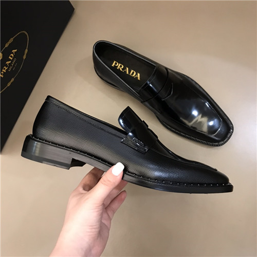 プラダメンズレザーオックスフォードシューズ,S0692,ブラック