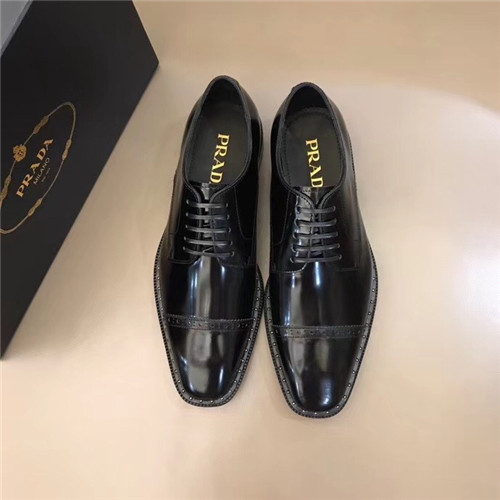 プラダメンズレザーオックスフォードシューズ,S0695,ブラック