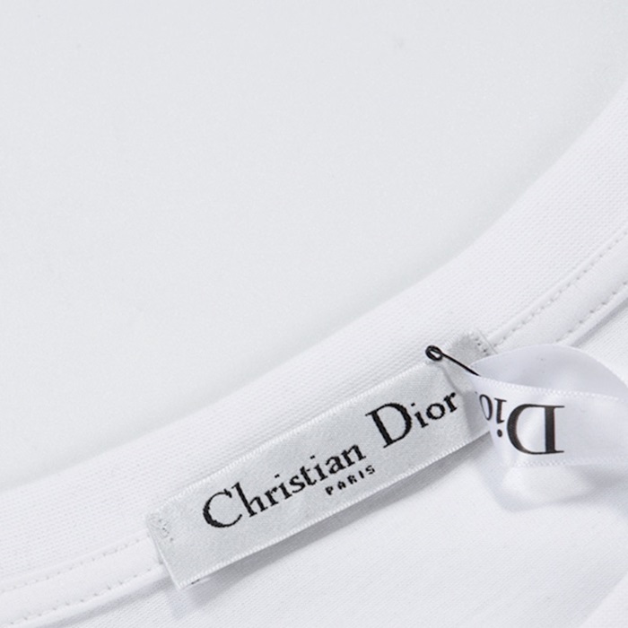 ディオール-ディオールユニセックスカジュアルクルーネック半袖Tシャツo01132ホワイト