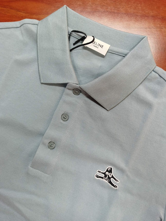 セリーヌメンズコットンポロ半袖Tシャツl0104.ブルー
