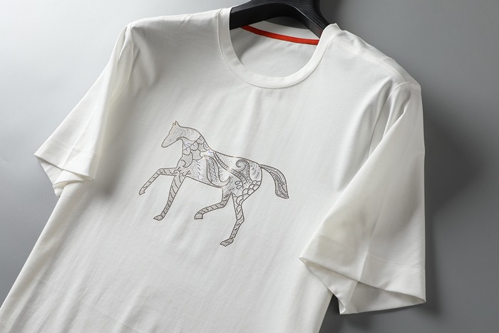 エルメス-エルメスメンズクルーネック半袖Tシャツr0594ブルー
