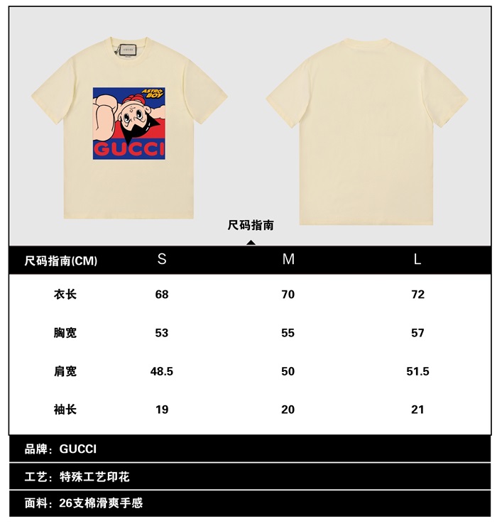 グッチユニセックス半袖Tシャツc03442アイボリー