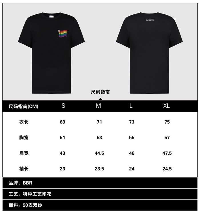 バーバリーバーバリーユニセックスコットン半袖Tシャツr03696ブラック