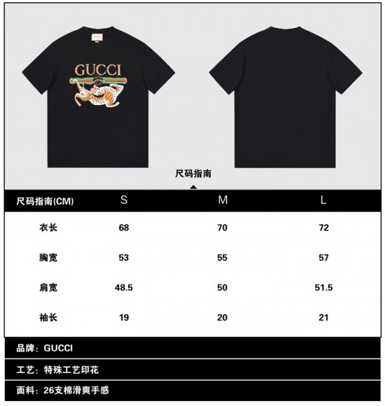 グッチユニセックス半袖Tシャツc03478ブラック