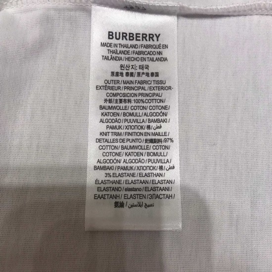 バーバリーバーバリーユニセックスコットン半袖Tシャツr03709.ホワイト