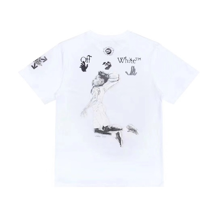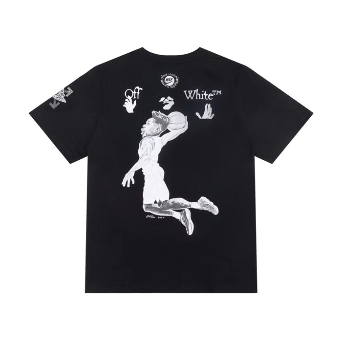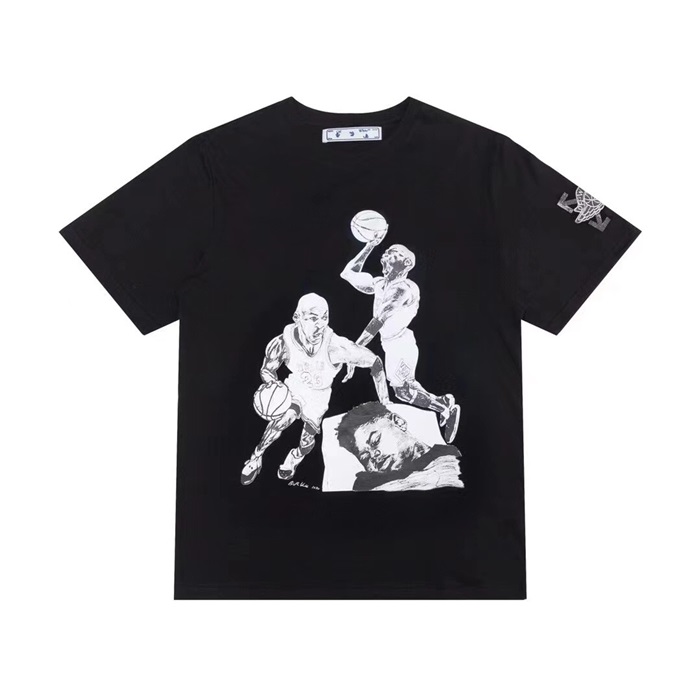 オフホワイトオフホワイトユニセックスプリントコットン半袖Tシャツf0643ブラック