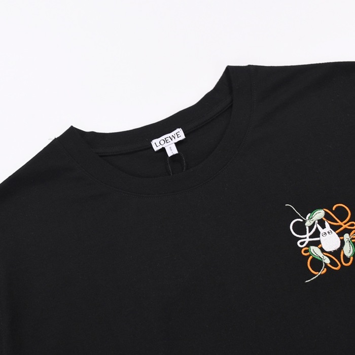 ロエベロエベユニセックススマイル半袖Tシャツe0396ブラック