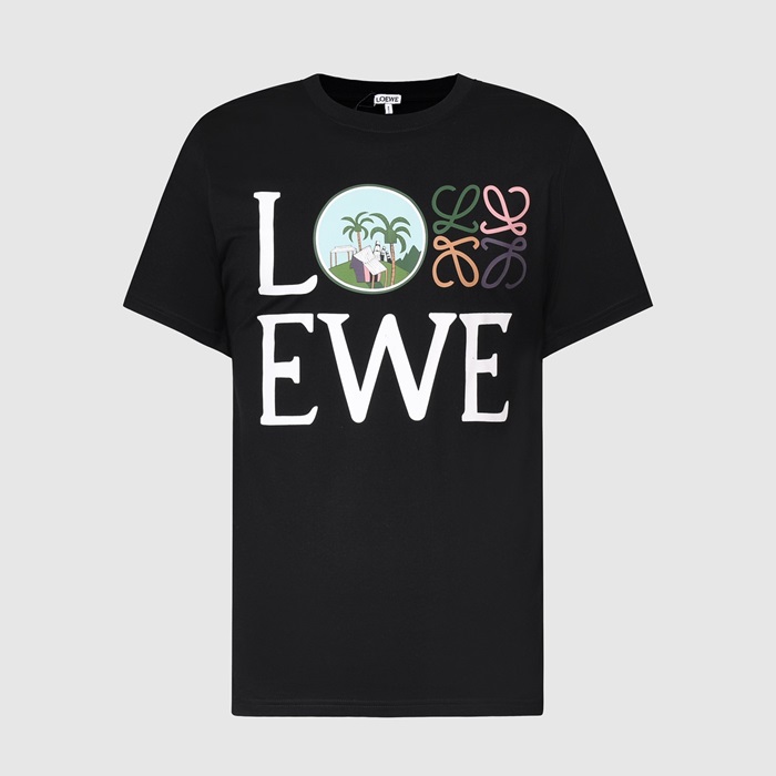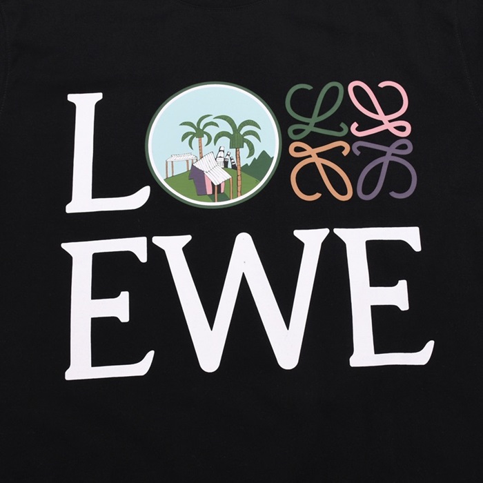 ロエベロエベユニセックススマイル半袖Tシャツe0398ブラック