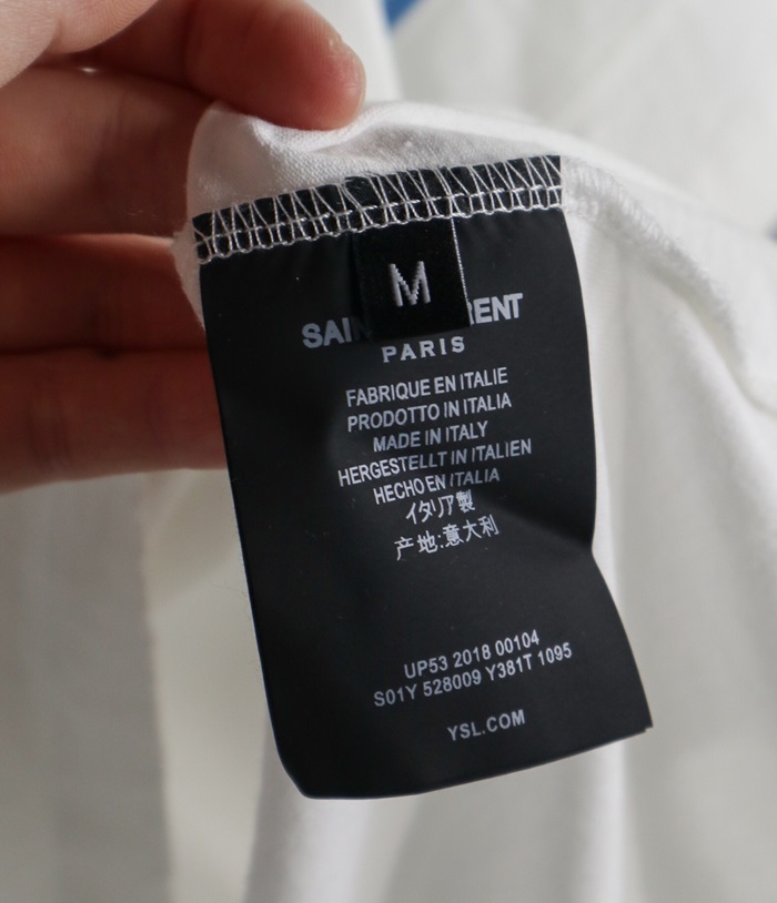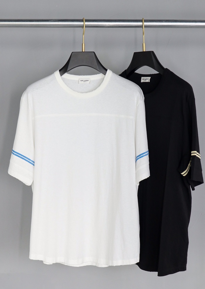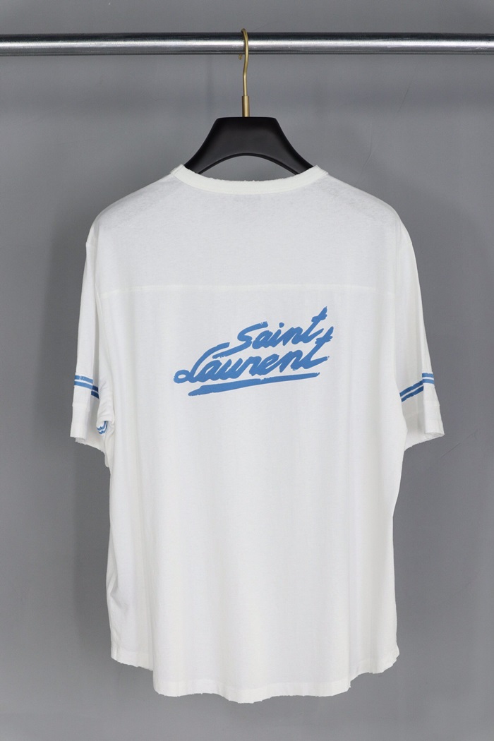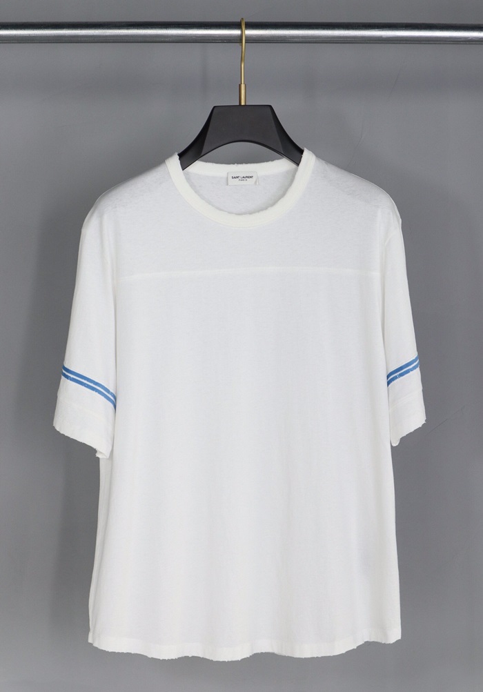 サンローランメンズコットン半袖Tシャツl0111ホワイト