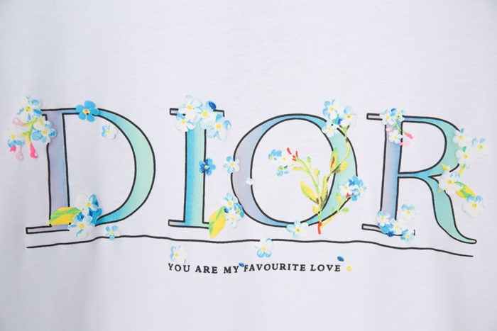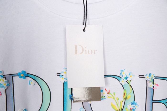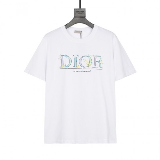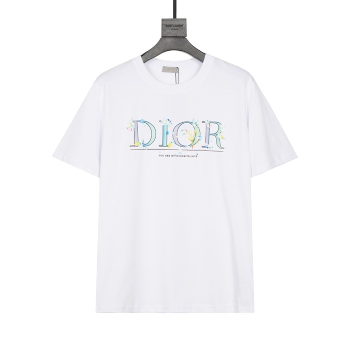 ディオール-ディオールユニセックスカジュアルクルーネック半袖Tシャツo01148ホワイト