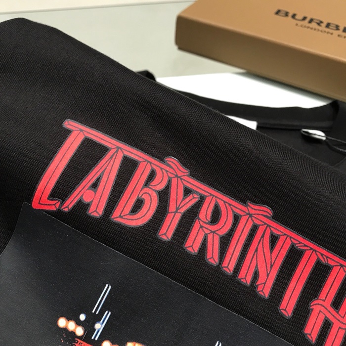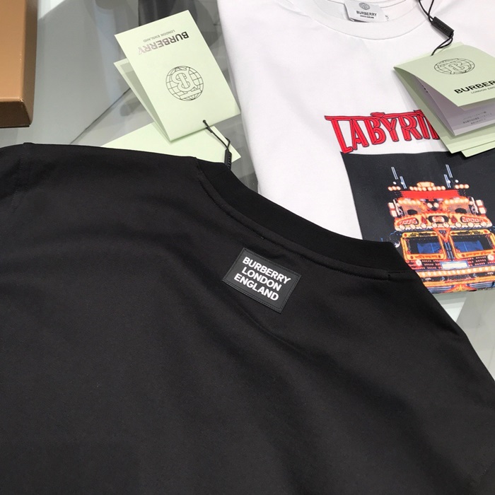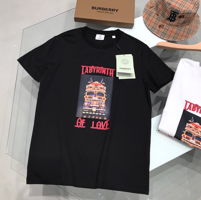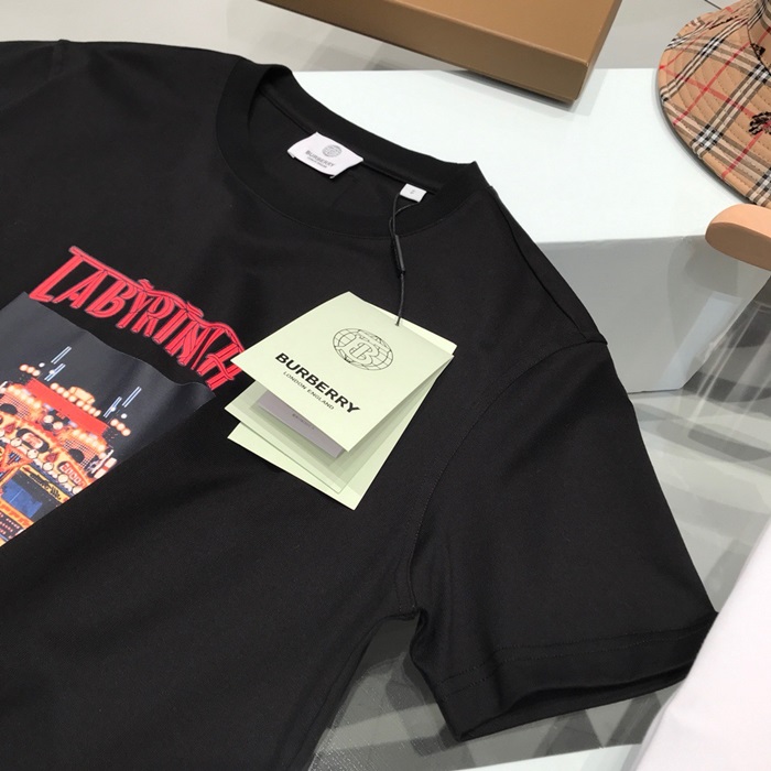 バーバリーバーバリーユニセックスコットン半袖Tシャツr03734.ブラック