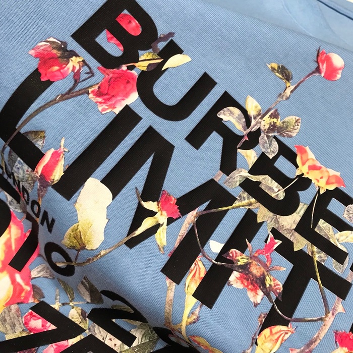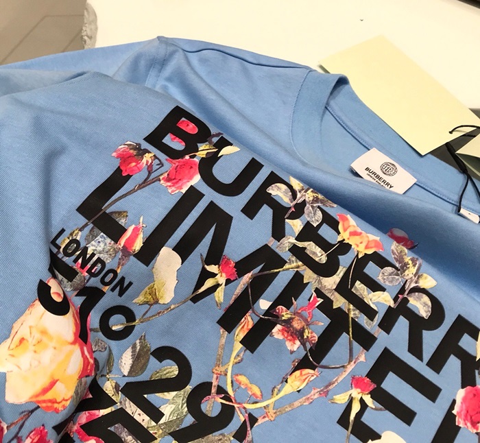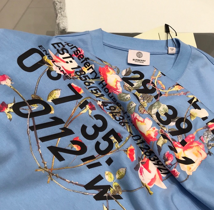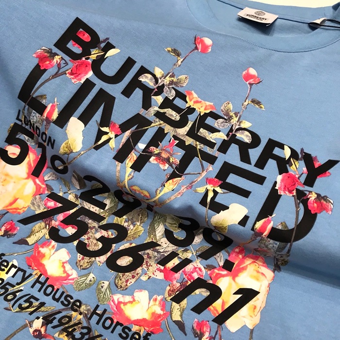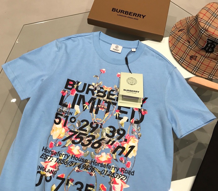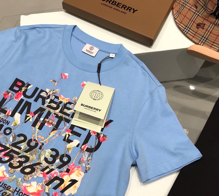 バーバリーバーバリーユニセックスコットン半袖Tシャツr03725.ブルー