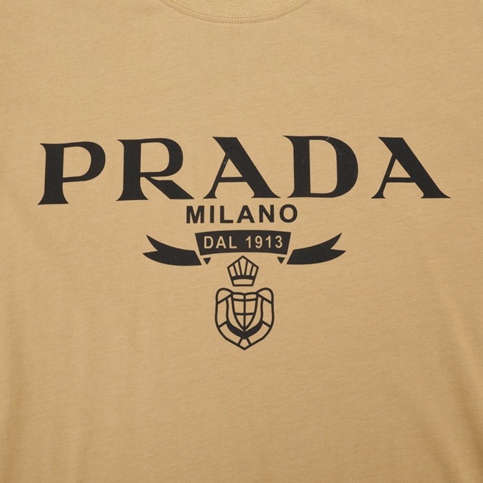 プラダプラダユニセックスベーシック半袖Tシャツa02195キャメル