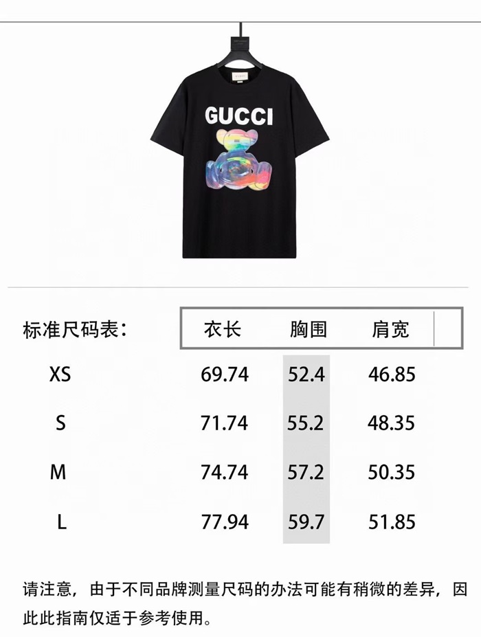 グッチユニセックス半袖Tシャツc03496ブラック