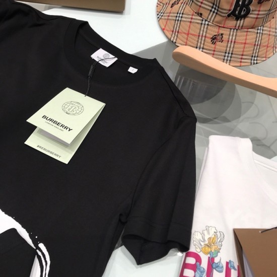 バーバリーユニセックスコットン半袖Tシャツr03736.ブラック