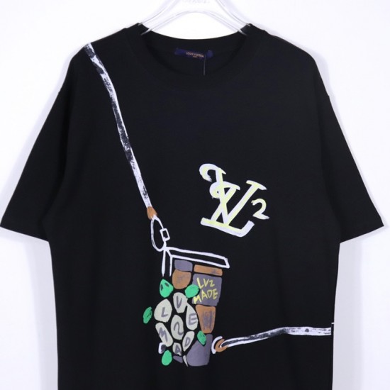 ルイヴィトンルイヴィトンユニセックス半袖Tシャツu02664ブラック