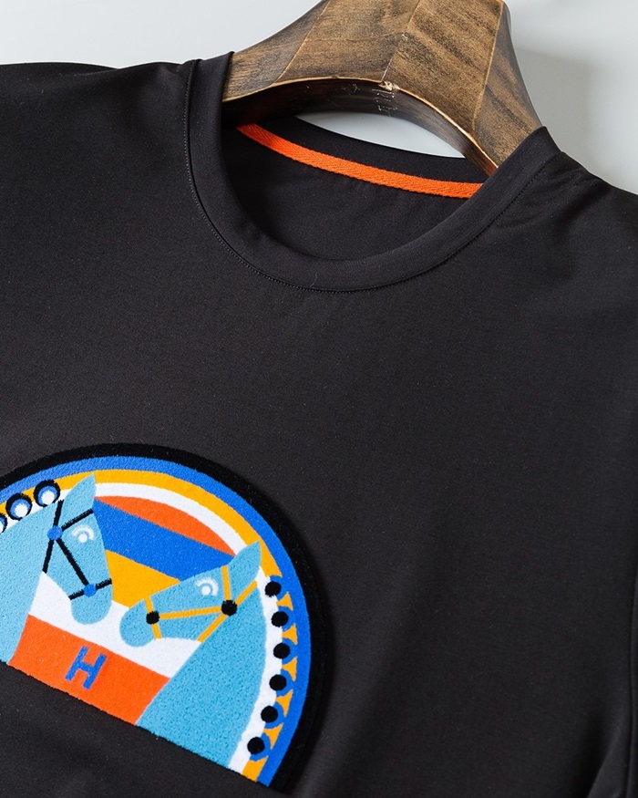 エルメス-エルメスメンズクルーネック半袖Tシャツr0600ブラック