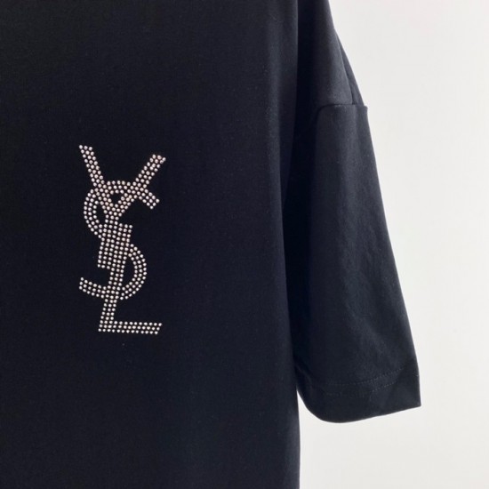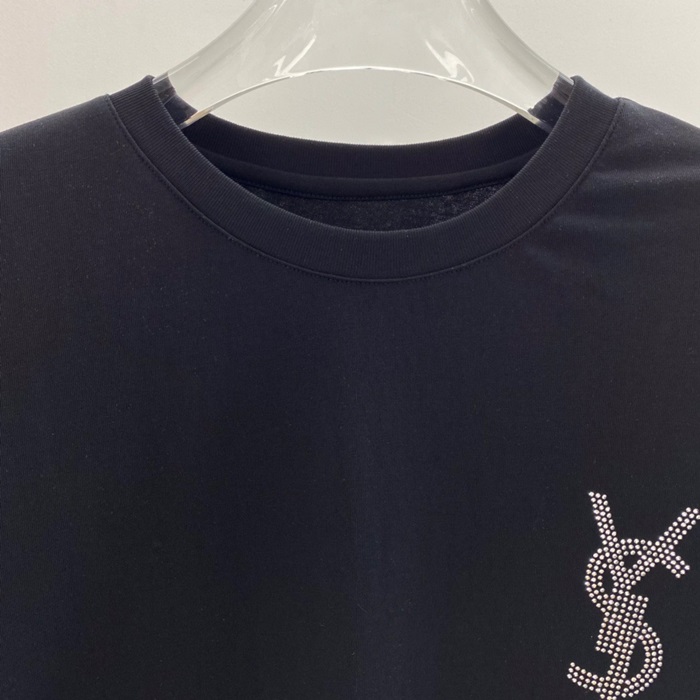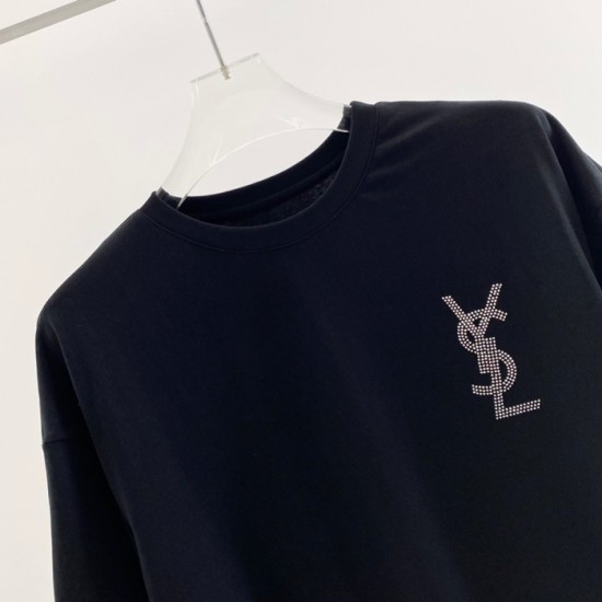 サンローランメンズコットン半袖Tシャツl0113.ブラック
