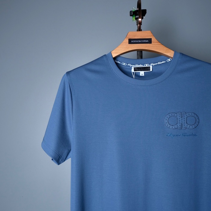 サルヴァトーレフェラガモサルヴァトーレフェラガモメンズベーシックコットン半袖Tシャツr0322ブルー