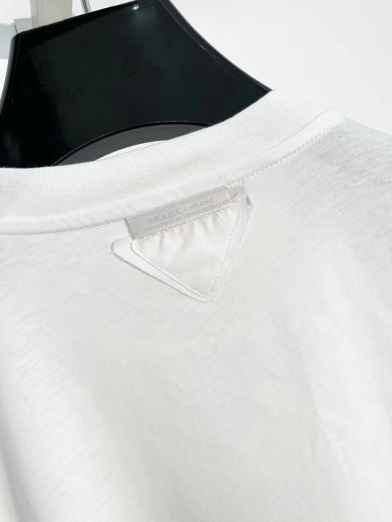 プラダプラダユニセックスベーシック半袖Tシャツa02204.ホワイト