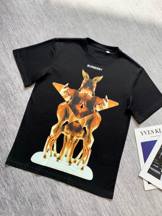 バーバリーバーバリーメンズコットン半袖Tシャツr03784.ブラック