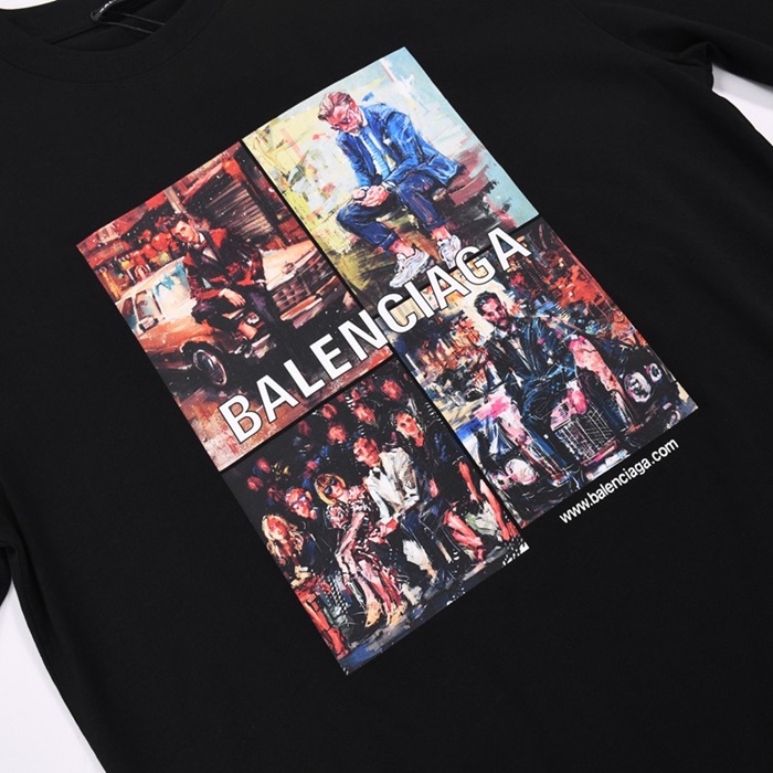 バレンシアガバレンシアガユニセックスコットン半袖Tシャツl0983ブラック
