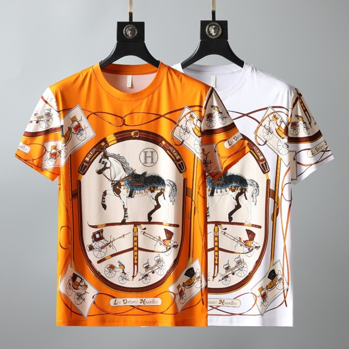 エルメス-エルメスメンズクルーネック半袖Tシャツr0609ホワイト