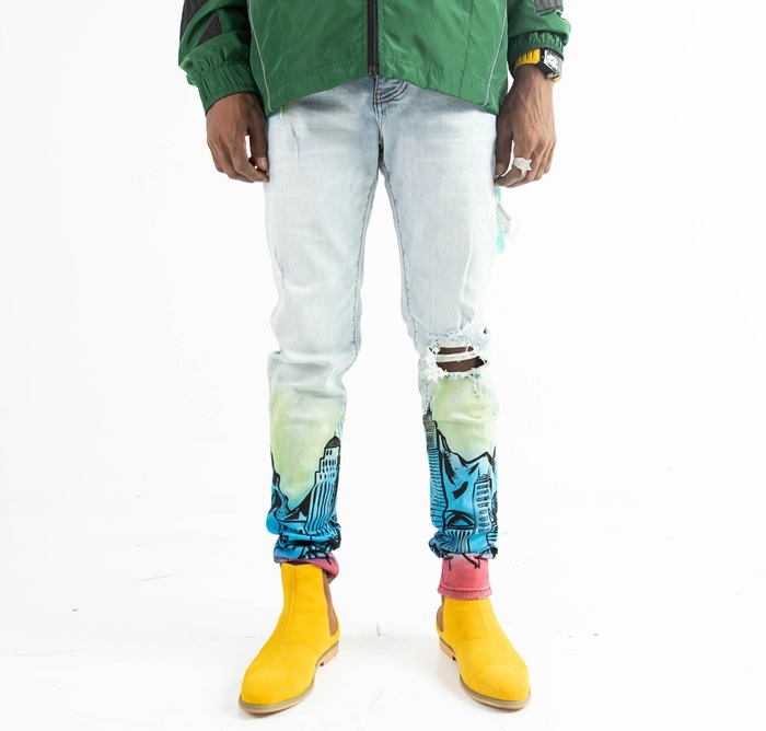 オフホワイトメンズデニムジーンズf0675ブルー