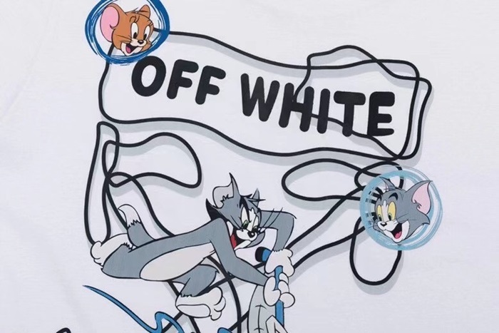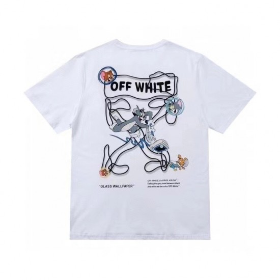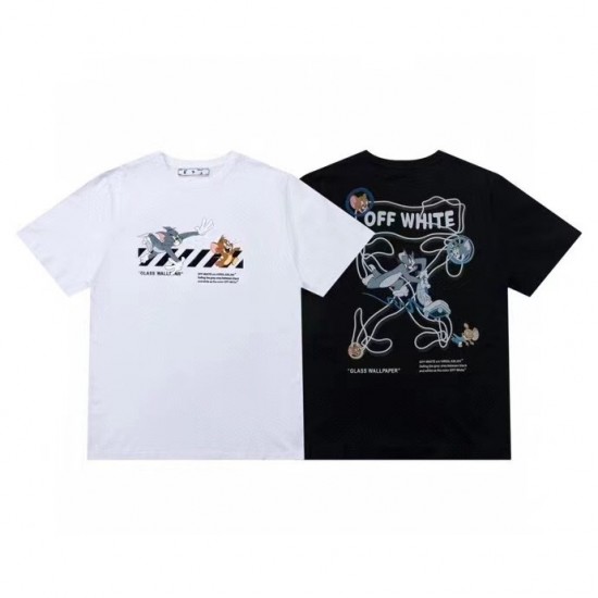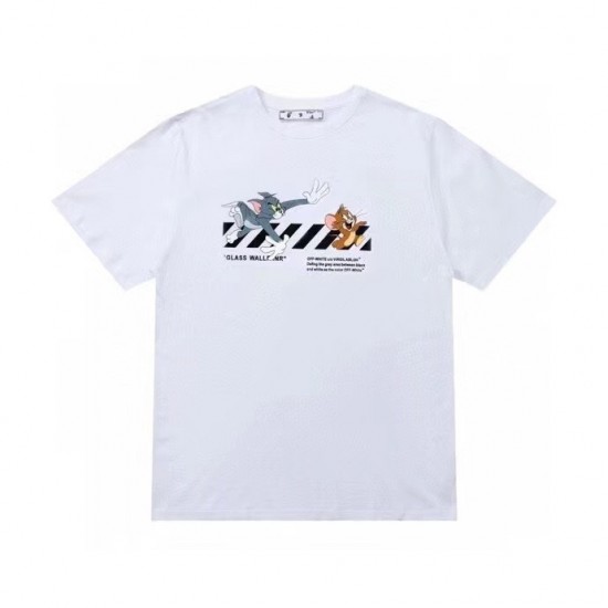 オフホワイトオフホワイトユニセックスプリントコットン半袖Tシャツf0692ブラック