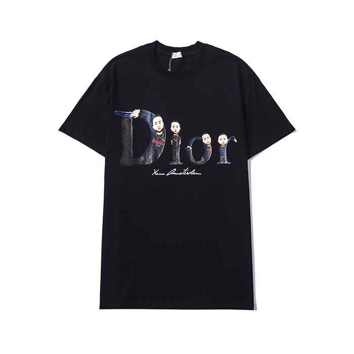 -ディオールユニセックスカジュアルクルーネック半袖Tシャツo01182.ブラック