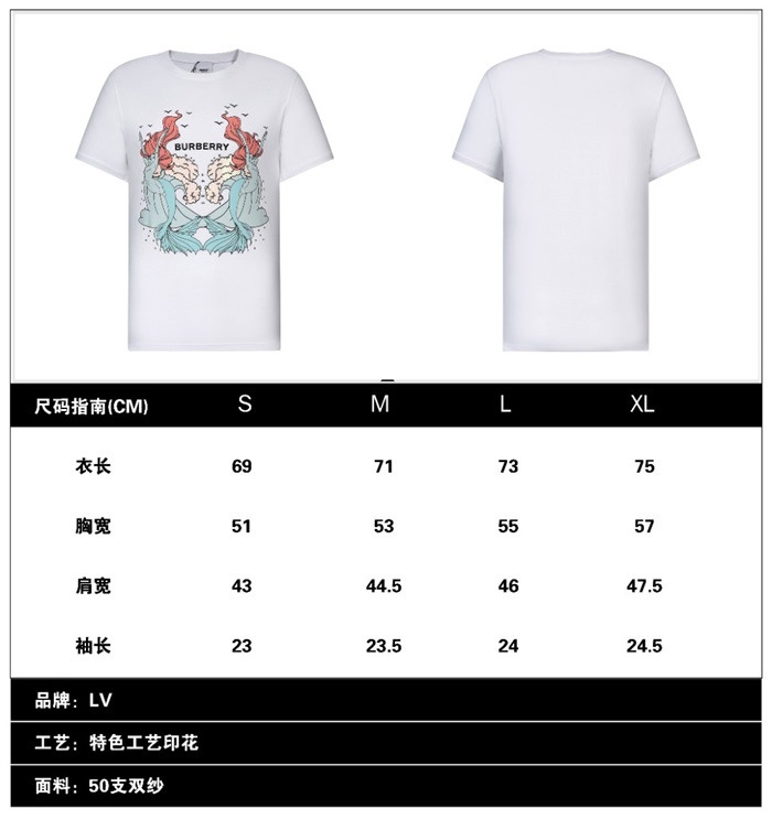 バーバリーバーバリーユニセックスコットン半袖Tシャツr03797ホワイト