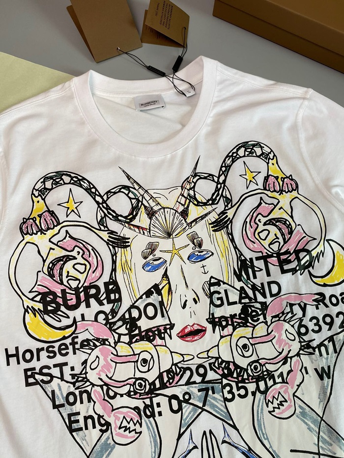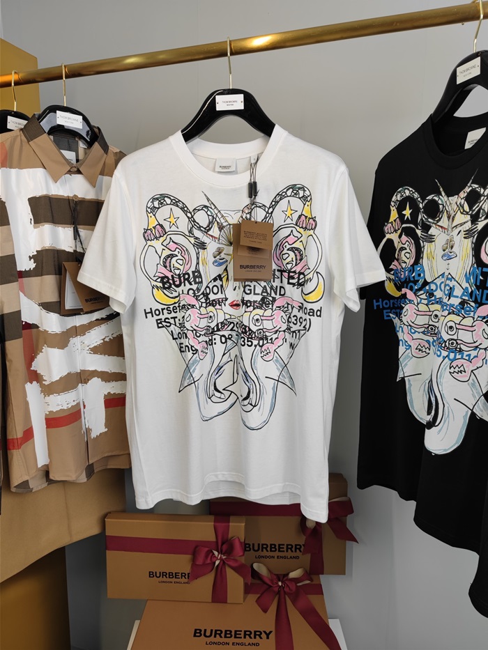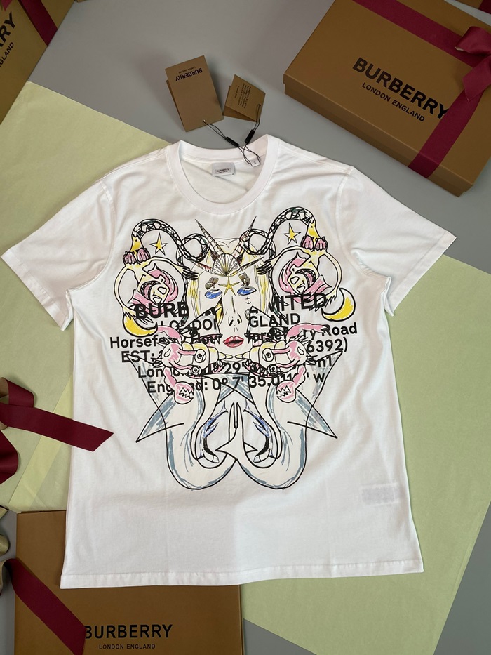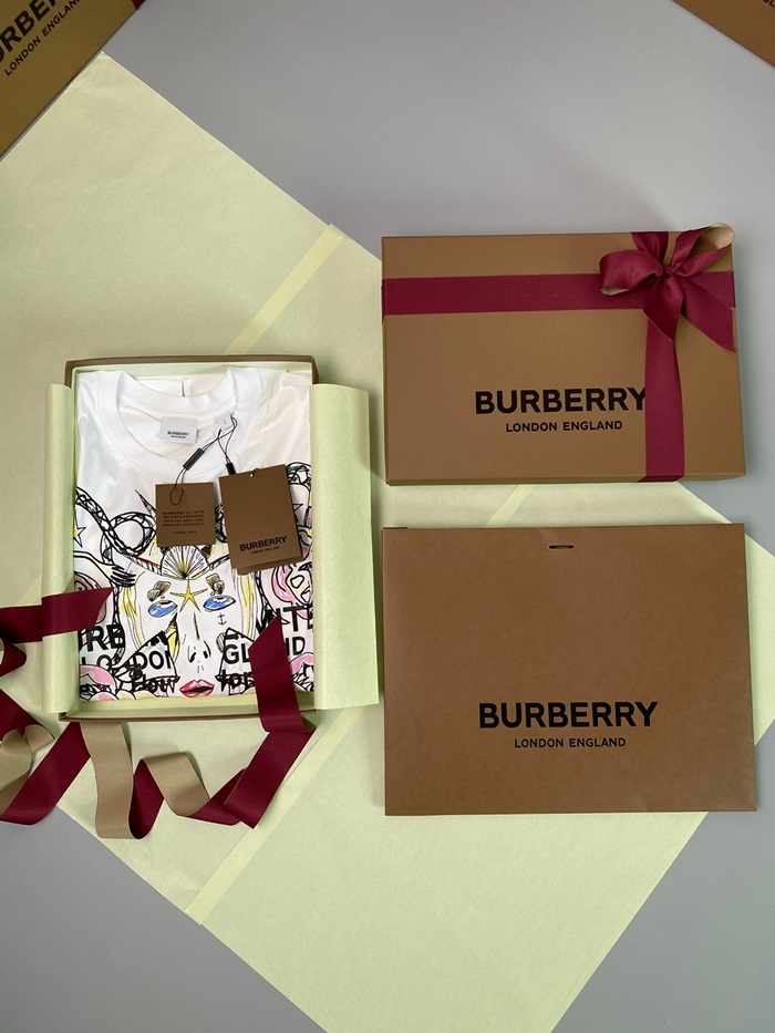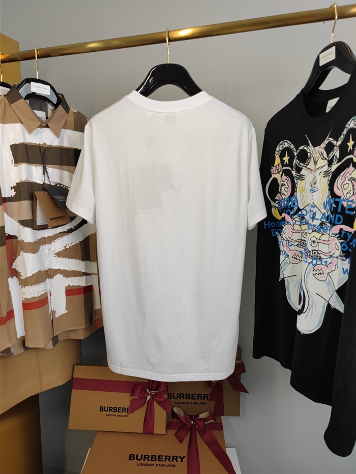 バーバリーバーバリーユニセックスコットン半袖Tシャツr03799.ホワイト