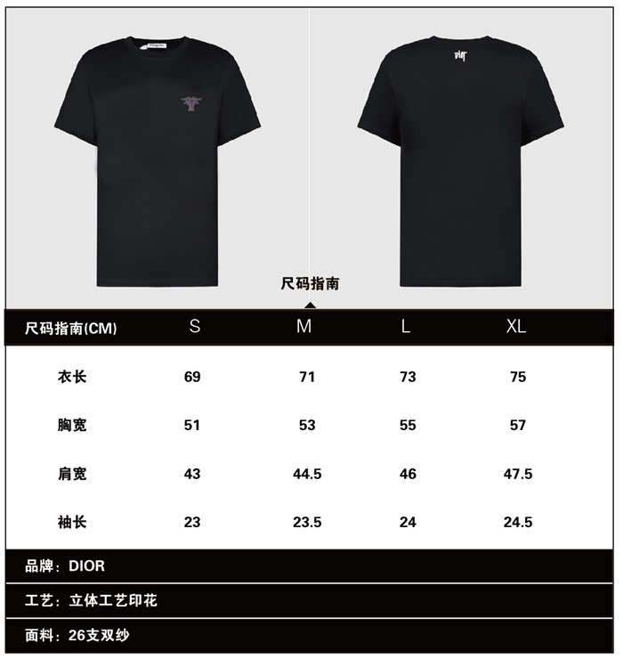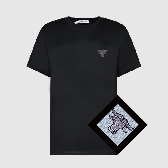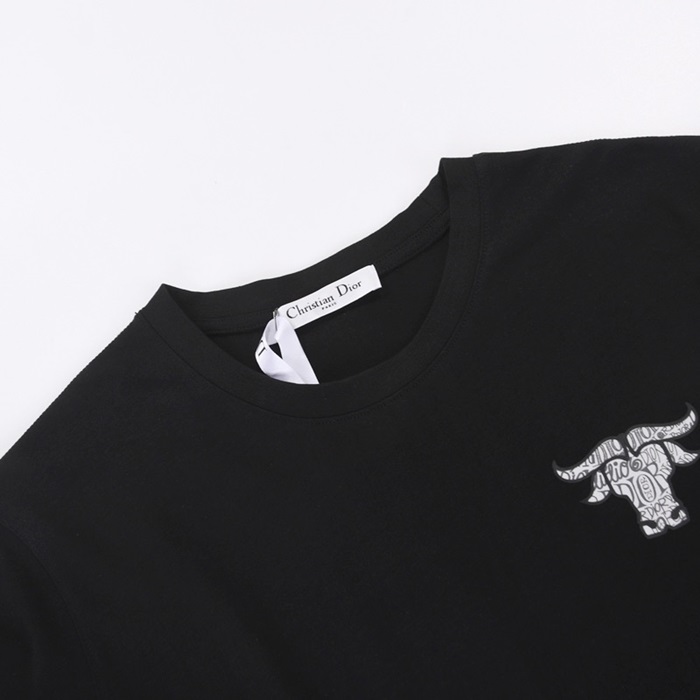 -ディオールユニセックスカジュアルクルーネック半袖Tシャツo01197ブラック
