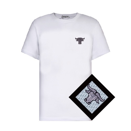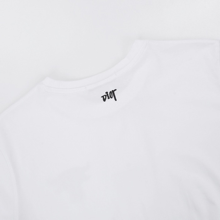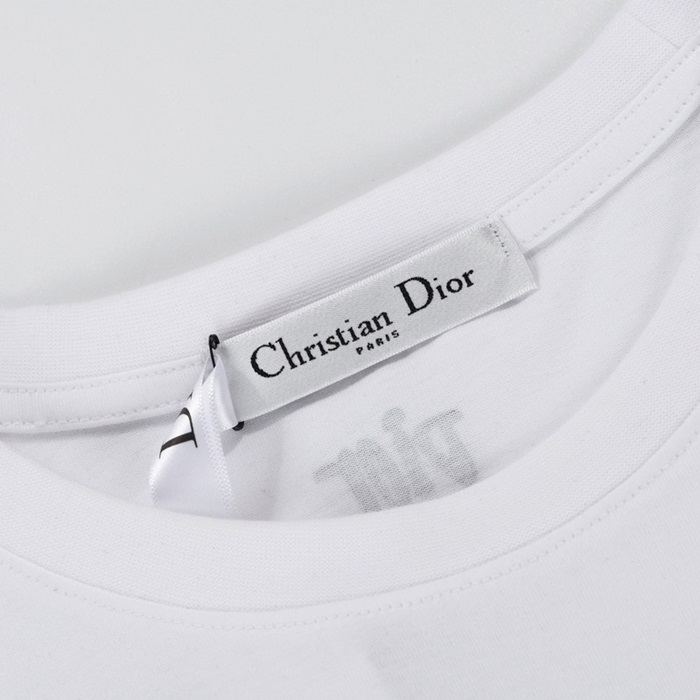 -ディオールユニセックスカジュアルクルーネック半袖Tシャツo01199ホワイト