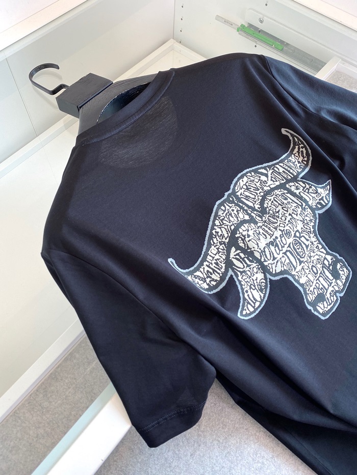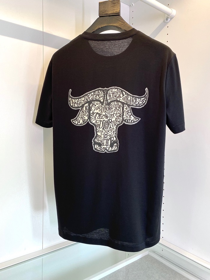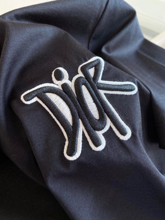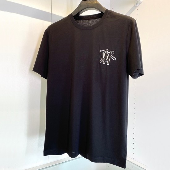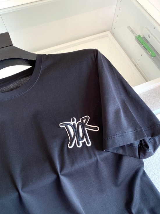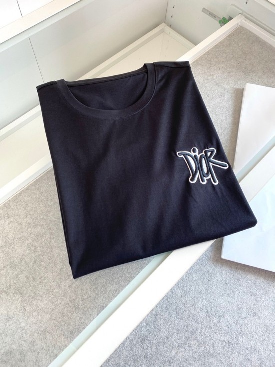 -ディオールユニセックスカジュアルクルーネック半袖Tシャツo01201ブラック