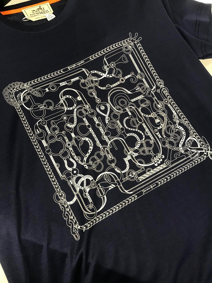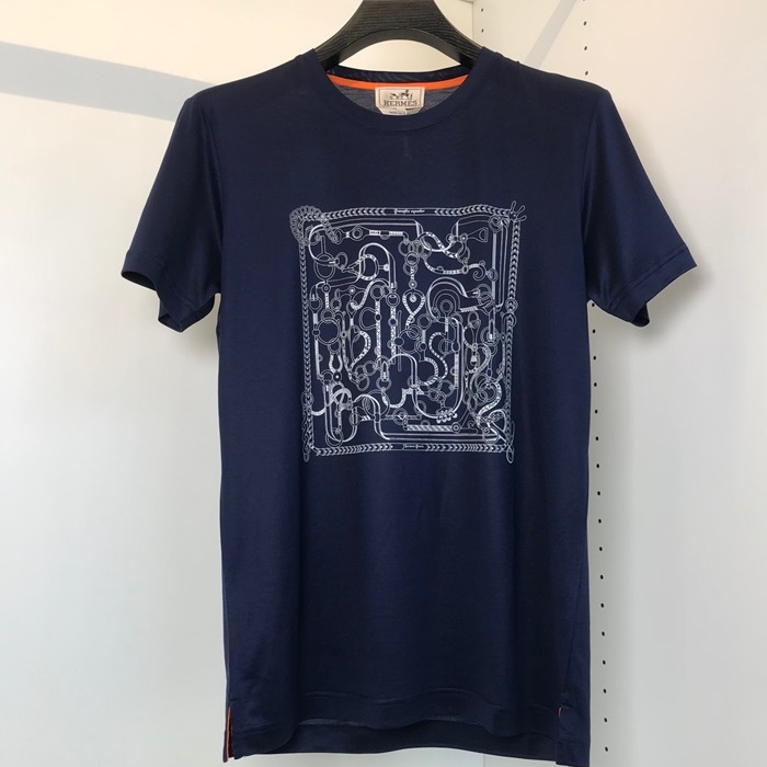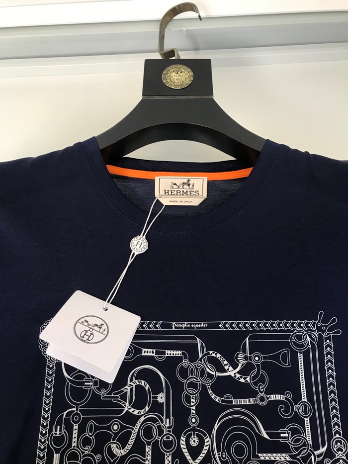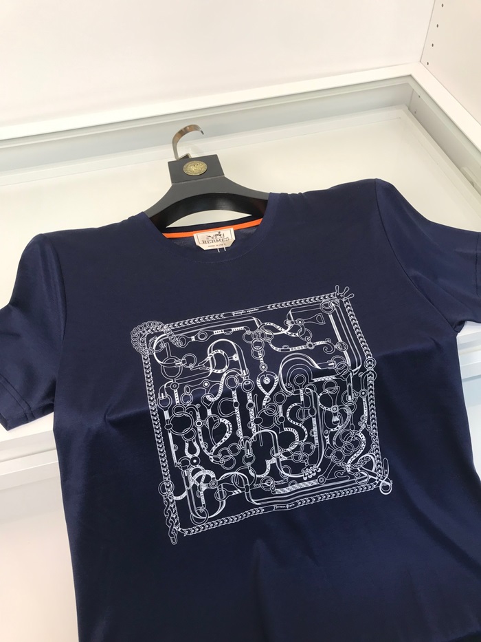 エルメス-エルメスメンズクルーネック半袖Tシャツr0617.ネイビー