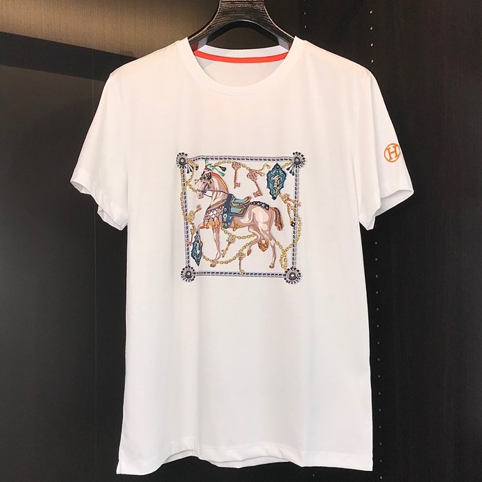 エルメス-エルメスメンズクルーネック半袖Tシャツr0622.ホワイト