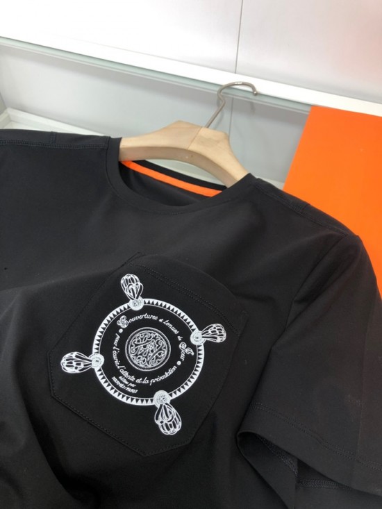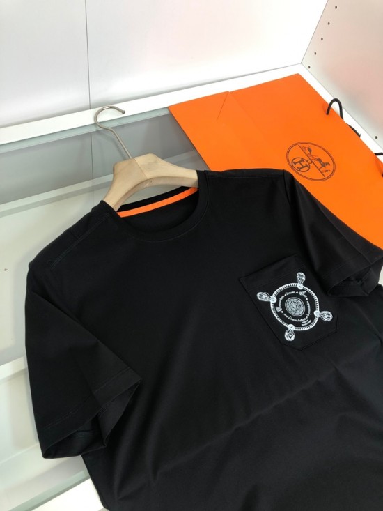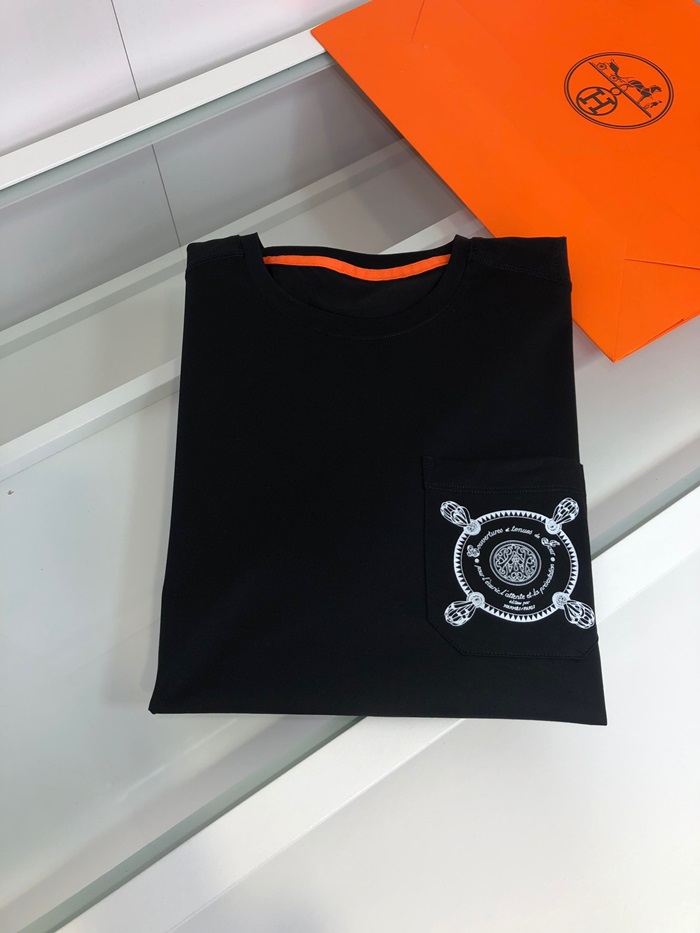 エルメス-エルメスメンズクルーネック半袖Tシャツr0627.ブラック